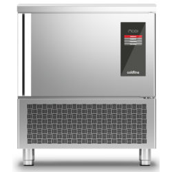 Sistema refrigerante plug-In con condensazione ad aria con gas refrigerante ecologico R290. Touch screen 4,3" sulla porta e modalità di funzionamento con ricette personalizzabili, a tempo o con sonda al cuore. Ventilazione regolabile 25-100%. Resa abbattimento +90/+3°C - 28 Kg; resa surgelazione +90/-18°C - 23 Kg.