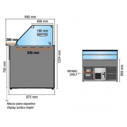 VETRINA GELATO - STATICA - TEMPERATURA -15°/-20° - CAPACITA' 9 VASCHETTE - CON VANO RISERVA