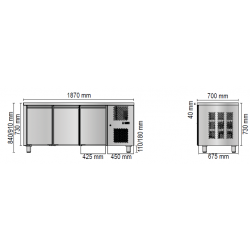 - Pannello di controllo elettronico frontale con sonda 1 NTC per tavoli TN (temperatura normale), con 2 sonde NTC per tavoli BT (bassa temperatura)