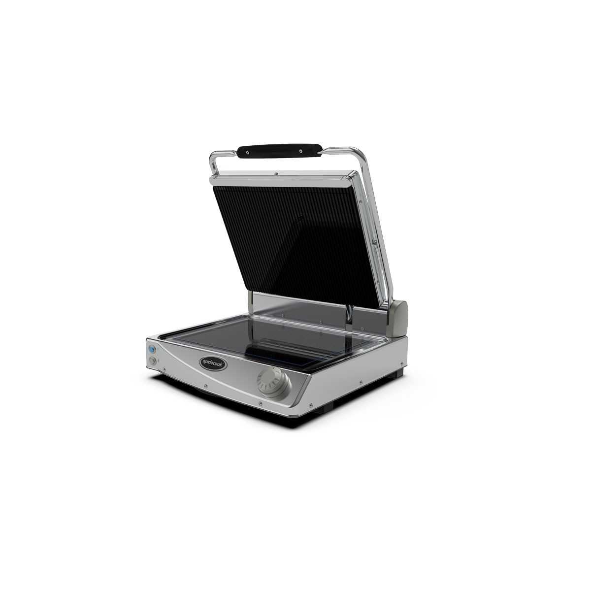 Sistemi di cottura professionali a contatto con piani in Vetroceramica, adatte per la cottura di un ampia gamma di cibi diversi come: toast, panini, carne, pesce, verdure, uova, etc. Elevata qualità della cottura grazie alla distribuzione uniforme del calore prodotto e all’ uso di superfici di cottura in Vetroceramica , materiale che offre alta resistenza agli shock termici, antiaderenza , non porosità e quindi impermeabilità ai sapori e agli odori. Ampia versatilità d’ uso grazie alla tecnologia SHB ™ Plus, che garantisce un riscaldamento combinato ( per contatto e per irraggiamento infrarosso) e la possibilità di raggiungere alte temperature di cottura ( sino a 400°C). Sino al 60 % di risparmio in Tempo di Preriscaldamento e sino al 60 % di risparmio in Consumi Energetici grazie al sistema di isolamento termico ad alta efficienza Protek.Safe ™, che elimina le perdite non necessarie di energia.