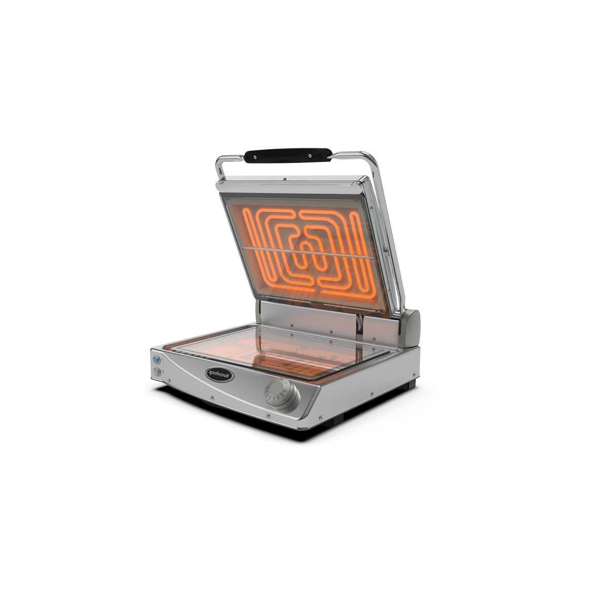 Sistemi di cottura professionali a contatto con piani in Vetroceramica, adatte per la cottura di un ampia gamma di cibi diversi come: toast, panini, carne, pesce, verdure, uova, etc. Elevata qualità della cottura grazie alla distribuzione uniforme del calore prodotto e all’ uso di superfici di cottura in Vetroceramica , materiale che offre alta resistenza agli shock termici, antiaderenza , non porosità e quindi impermeabilità ai sapori e agli odori. Ampia versatilità d’ uso grazie alla tecnologia SHB ™ Plus, che garantisce un riscaldamento combinato ( per contatto e per irraggiamento infrarosso) e la possibilità di raggiungere alte temperature di cottura ( sino a 400°C). Sino al 60 % di risparmio in Tempo di Preriscaldamento e sino al 60 % di risparmio in Consumi Energetici grazie al sistema di isolamento termico ad alta efficienza Protek.Safe ™, che elimina le perdite non necessarie di energia.