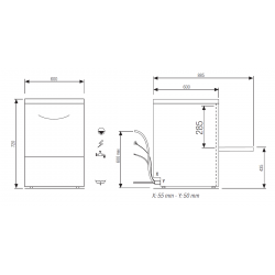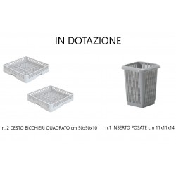 - DOTAZIONE DI SERIE n.2 cesto bicchieri quadrato cm 50x50x10 - n.1 inserto posate cm 11x11x14 - dosatore brillantante - dosatore detergente