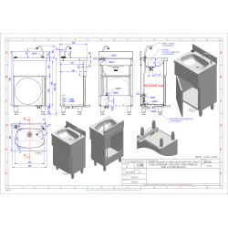 - Lavamani 500x400x850 mm in materiale AISI 304 su mobile con porta battente completo di:
