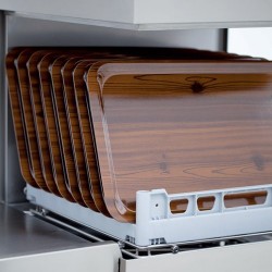 Interfaccia elettromeccanica. Costruita in doppia parete con cappa in parete singola. La vasca è stampata ed è dotata di filtro integrale in materiale composito. Il sollevamento della cappa è dolce e lo sforzo dell'operatore ridotto. La camera di lavaggio è priva di tubazioni interne e spigoli. Può contenere anche vassoi Gastronom.