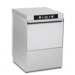 Lavastoviglie sottobanco con cesto da 50x50 cm costruita in doppia parete stratificata sui fianchi con guide cesto arrotondate e imbutite e porta in doppia parete integrale. La vasca ha il fondo imbutito ed è dotata di filtro integrale in materiale composito. La camera di lavaggio è priva di tubazioni interne e spigoli.