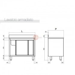 Lavello L 150 X P 70 X H 85 cm - Vasca L 40 X P 50 X H 30 cm
