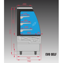 Espositore murale senza ante, temperature da 0° a +10°, per salumi, latticini, carni, preconfezionati o bibite. Con o senza ruotine. Da 2 a 4 ripiani. Refrigerazione ventilata. Le dimensioni: larghezza da 60 cm a 108, profondità da 50 cm a 90 cm e altezza da 125 cm a 204 cm.
