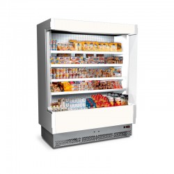 Espositore murale senza ante, temperature da 0° a +10°, per salumi, latticini, carni, preconfezionati o bibite. Con o senza ruotine. Da 2 a 4 ripiani. Refrigerazione ventilata. Le dimensioni: larghezza da 60 cm a 108, profondità da 50 cm a 90 cm e altezza da 125 cm a 204 cm.