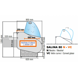 Spalle termoformate e coibentate con fianco in vetro temperato (spessore 40 mm cad.);