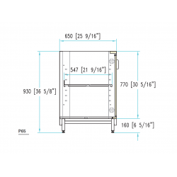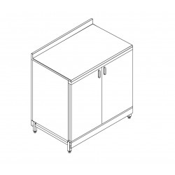 Corpo del retrobanco completamente in pannelli di lamiera inox AISI304 con finitura BA (lucida). Frontale a filo con gli altri elementi dell’arredo. Piano di fondo rinforzato e provvisto di passaggi apribili per i collegamenti idraulici. Ripiano intermedio rinforzato regolabile su più posizioni senza necessità di attrezzi. Basamento in acciaio al carbonio con strutture trasversali realizzate in tubolare completi di piedini di regolazione, mentre le barre longitudinali sono realizzate in lamiera pressopiegata elettrozincata e verniciate. Il basamento può essere allestito come accessorio a richiesta con un profilo supporto pedana.
