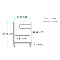 RETROBANCO BAR NEUTRO - A GIORNO CON CASSETTO CASSA - CON PIANO E ALZATINA - LARGHEZZA 50 cm