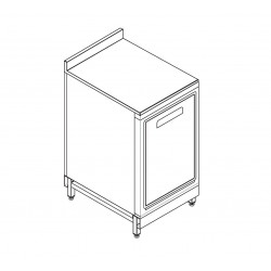 Corpo del retrobanco completamente in pannelli di lamiera inox AISI304 con finitura BA (lucida). Frontale a filo con gli altri elementi dell’arredo. Piano di fondo rinforzato e provvisto di passaggi apribili per i collegamenti idraulici. Ripiano intermedio rinforzato regolabile su più posizioni senza necessità di attrezzi. Basamento in acciaio al carbonio con strutture trasversali realizzate in tubolare completi di piedini di regolazione, mentre le barre longitudinali sono realizzate in lamiera pressopiegata elettrozincata e verniciate. Il basamento può essere allestito come accessorio a richiesta con un profilo supporto pedana.