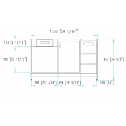 MOBILE MACCHINA CAFFE' - CON TRAMOGGIA E CASSETTO BATTIFONDI - CON PIANO E ALZATINA - LARGHEZZA 150 cm
