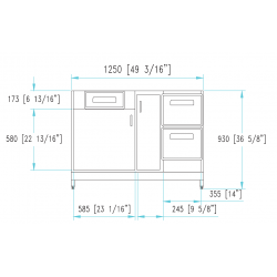 - 2 vani chiusi con antina - con cassetto battifondi e doppia tramoggia battifondi - con piano e alzatina