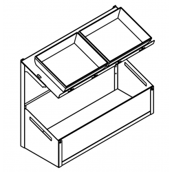 RETROBANCO PER PANE - BASE CON ANTE BATTENTI CON ALZATA E 2 RIPIANI INCLINATI CON CESTI IN VIMINI - profondità 66,8 cm