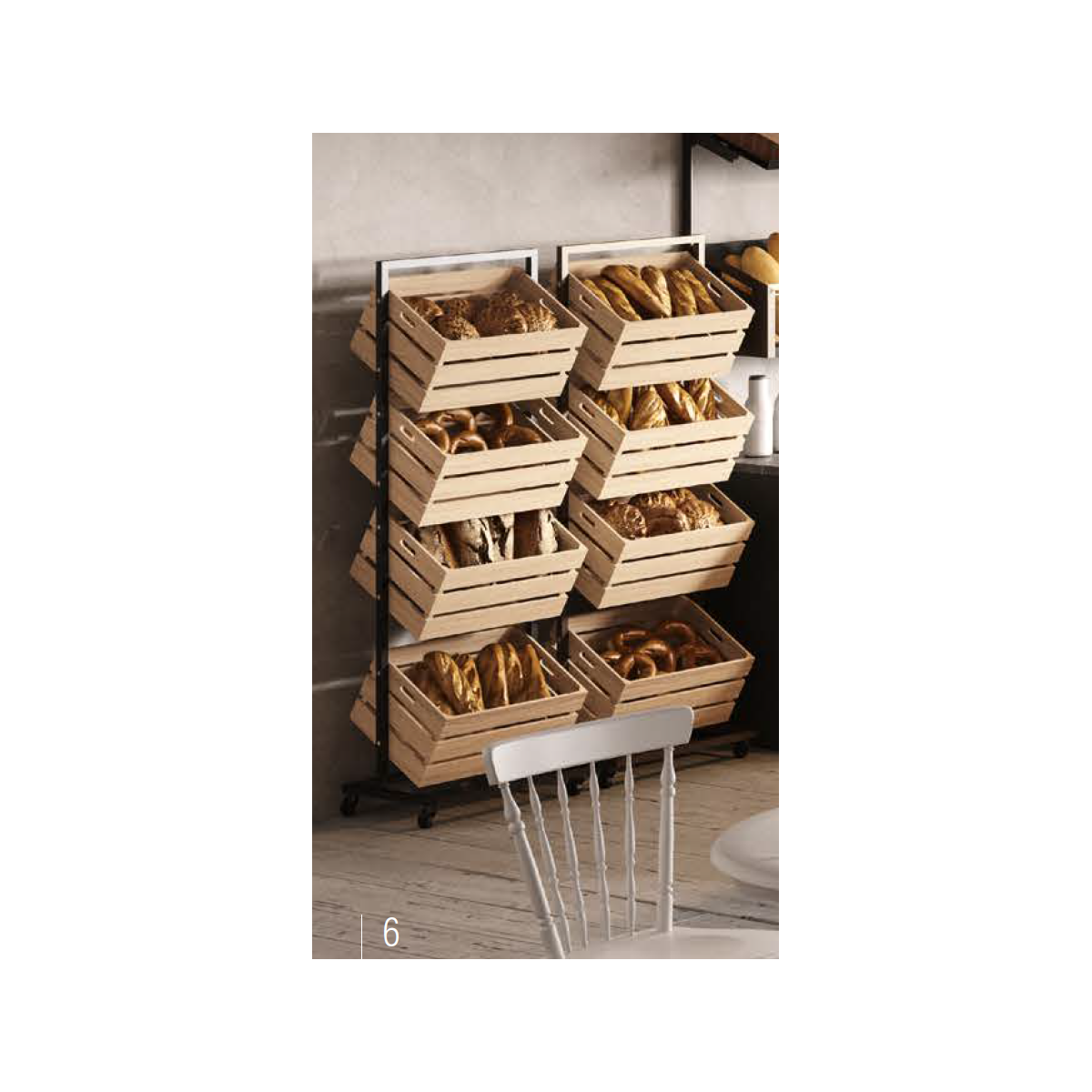 RETROBANCO PER PANE - BASE CON ANTE BATTENTI CON ALZATA E 2 RIPIANI INCLINATI CON CESTI IN VIMINI - profondità 41,5 cm