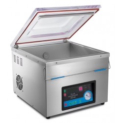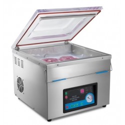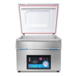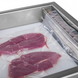 Questa macchina per il sottovuoto è adatta a sacchetti sottovuoto fino a 40 x 50 cm. Ideale per il confezionamento ermetico degli alimenti, questo modello da tavolo di grandi dimensioni si adatta bene a banconi o tavoli ed è utile per un uso intensivo quotidiano.