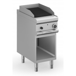 La gamma di griglie pietra lavica PIANETACHEF si compone di modelli sia 1/2 modulo che modulo intero, con funzionamento a gas, nella versione monoblocco su base armadiata e top. Griglia/piano cottura ghisa.