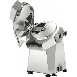 Macchina realizzata appositamente per cubettare mozzarella. Carcassa in acciaio inox - corpo centrale e coperchio in alluminio - microinterruttori di sicurezza su coperchio e maniglia.