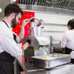 Possibilità di dotarsi di una vasta gamma di dischi e griglie delle più alte qualità di taglio. Combinando ognuno di questi accessori si possono ottenere più di 70 diversi tipi di tagli e grattugiati.