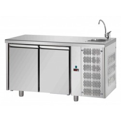 Tavolo refrigerato con lavello e refrigerazione ventilata, capienza da 310 a 620 litri temperature positive (0 +10), larghezza da 142 cm a 232cm, profondità 70 cm e altezza 120 cm.