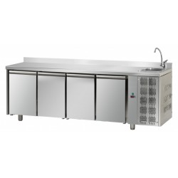 TAVOLO REFRIGERATO CON LAVELLO A DESTRA 4 PORTE -TEMPERATURA +2°/+8°-PIANO LISCIO E ALZATINA-PROFONDITA' 70
