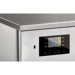 Tavolo fermalievitazione con umidificatore, temperature da -5 a + 40, capacità dalle 12 alle 24 teglie (L 60 x P 40), larghezza da 146 cm a 252 cm, profondità 75 cm e altezza 85 cm.