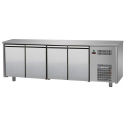 Tavolo refrigerato con refrigerazione ventilata, capienza da 282 a 620 litri, temperature positive (0 +10) e negative (-18 -22), larghezza da 128 cm a 232 cm, profondità da 70 cm a 80 cm e altezza da 85 cm a 95cm.