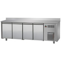 Tavolo refrigerato con refrigerazione ventilata, capienza da 282 a 620 litri, temperature positive (0 +10) e negative (-18 -22), larghezza da 128 cm a 232 cm, profondità da 70 cm a 80 cm e altezza da 85 cm a 95cm.