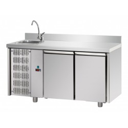 Tavolo refrigerato con lavello e refrigerazione ventilata, capienza da 310 a 620 litri temperature positive (0 +10), larghezza da 142 cm a 232cm, profondità 70 cm e altezza 120 cm.
