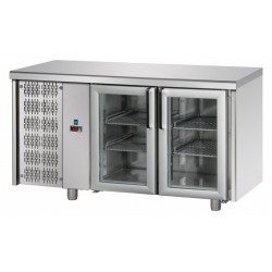 Tavolo refrigerato con refrigerazione ventilata, capienza da 282 a 620 litri, temperature positive (0 +10) e negative (-18 -22), larghezza da 128 cm a 232 cm, profondità da 70 cm a 80 cm e altezza da 85 cm a 95cm.