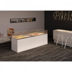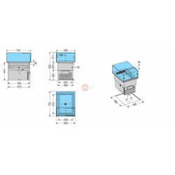Drop in refrigerato. Ideale per mantenere freschi alimenti e dolci. Struttura in acciaio inox AISI 304. Possibilità di contenere teglie 600 x 400. Sbrinamento automatico. Refrigerazione ventilata. Evaporazione condensa automatica. Gas refrigerante R404a.