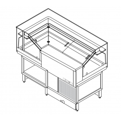 Sono tra loro canalizzabili tramiti viti di canalizzazione poste all’interno della vasca, facilmente accessibili. Su richiesta il banco può essere fornito privo di piano di servizio inox con predisposizione per ricevere piani in marmo, corian, granito ecc.. La parte espositiva interna della vasca a gli angoli arrotondati per garantire una comoda pulizia.