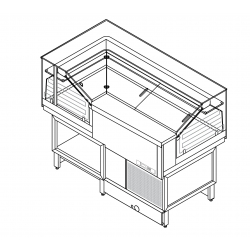 Sono tra loro canalizzabili tramiti viti di canalizzazione poste all’interno della vasca, facilmente accessibili. Su richiesta il banco può essere fornito privo di piano di servizio inox con predisposizione per ricevere piani in marmo, corian, granito ecc.. La parte espositiva interna della vasca a gli angoli arrotondati per garantire una comoda pulizia.