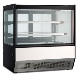Vetrina da banco ventilata, porte scorrevoli, costruzione in acciaio inox AISI 304, 2 mensole intermedie.