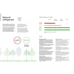 - l’impianto di refrigerazione è un gioiello di alta tecnologia e sostenibilità: refrigerante naturale R290, compressore ermetico ad alta efficienza e ventilatore elettronico. Minori vibrazioni e rumorosità, maggiore efficienza energetica (fino al 10% di risparmio) e massima sostenibilità ambientale in quanto pienamente compatibile con la normativa europea F-GAS