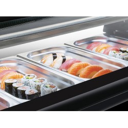 VETRINA REFRIGERATA SOPRABANCO PER PESCE TEMPERATURA +2°/+12° CON ANTINE SCORREVOLI LARGHEZZA 70 cm